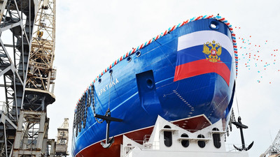 К флоту военных ледоколов, которые создает Россия, могут добавиться ударные корабли ледового класса. Об этом заявил «Известиям» советник гендиректора Крыловского государственного научного центра в Санкт-Петербурге Валерий Половинкин. По его словам, облик такого корабля еще обсуждается с военными, но «уже сейчас можно сказать, что многое он возьмет от нового ледокола ЛК-110Я „Лидер"». Поясним: «Лидер» — первое судно ледового класса, на котором будут установлены два атомных реактора нового поколения РИТМ-400, выдающих по 60 МВт мощности. В результате судно сможет идти сквозь двухметровый лед с невиданной скоростью — 14 узлов. А с меньшей скоростью — преодолеть лед толщиной до 4,5 метра. Обычные ледоколы, заметим, пробивают двухметровый лед со скоростью не б